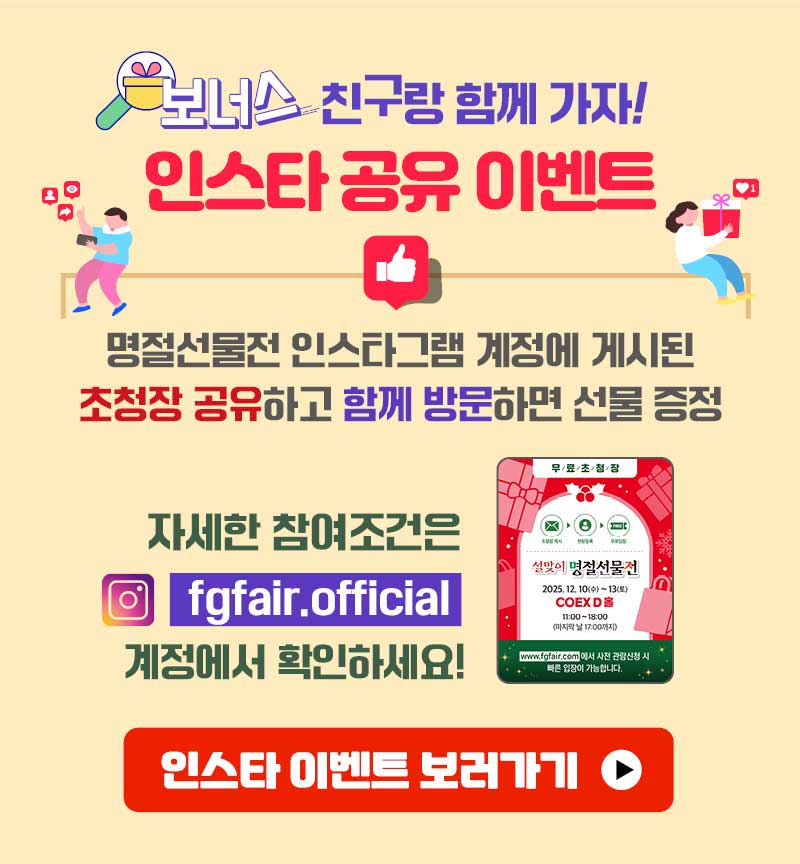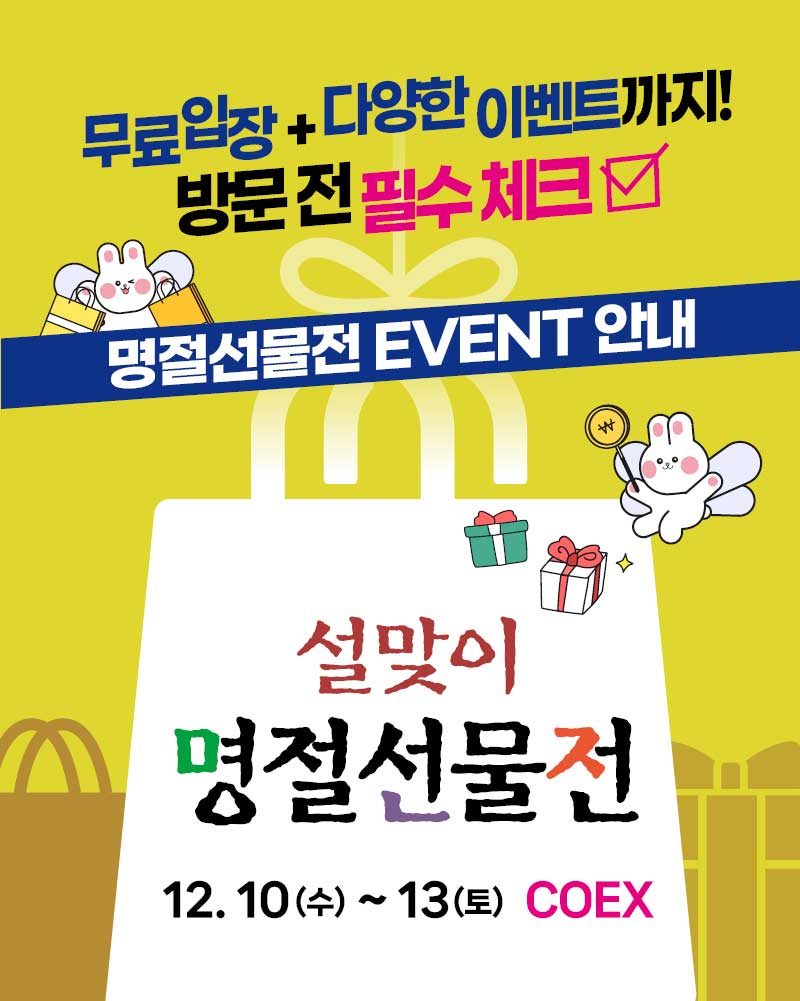 이벤트 참여하고 8. 25 - 28 월/화/수/목 4일간 코엑스 B홀 한가위 명절선물전에서 만나요❤