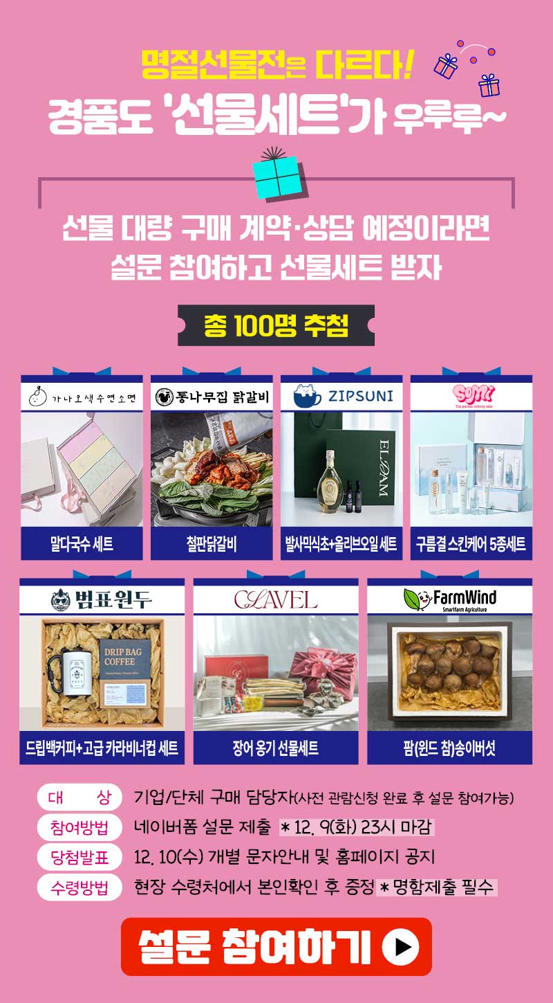 🤑K-직장인 주목! 명절선물전 입장하실 때 명함을 응모함에 쏙~ 넣어주세요! 매일 100명 추첨해 커피 쏩니다~